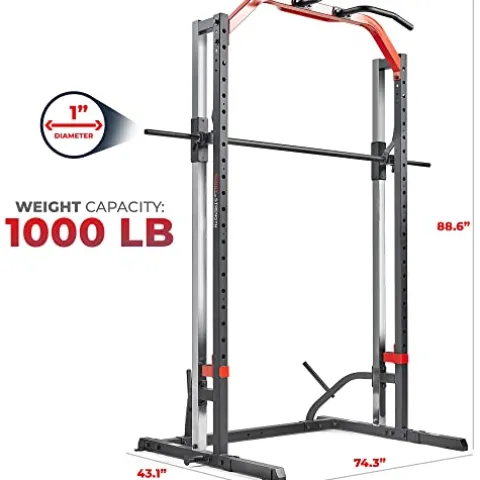 - HIGH MAX LOAD: Power through to your limits and beyond; from squats and bench presses to pull-ups the immense max weight capacity ensures this power cage is resilient enough to withstand your most intense workouts. *Squat Bar fits 1-inch diameter barbells only*