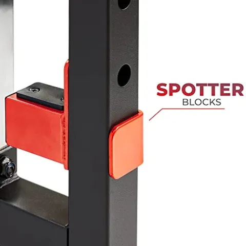 - SPOTTER BLOCKS: Rubber-lined safety bars stand vigilant in ensuring that you’re always protected in case of exercise emergencies or issues. Therefore, you can keep your mind laser-focused on your goals.