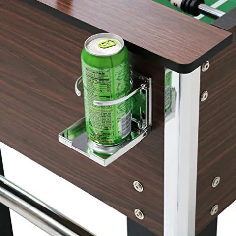 - Includes all game necessities: This game table includes 2 game balls, 4 leg levelers, players, manual score units, side ball returns, and plastic drink holders.