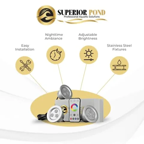 The SUPERIOR POND Fountain Color Changing Light Kit transforms your outdoor space with vibrant RGB illumination, featuring three powerful 9-watt light fixtures that deliver a total of 27 watts. Designed with durable stainless steel housings and tempered glass lenses, these lights are built to withstand the elements while providing stunning color displays for floating fountains up to 1HP. The kit is compatible with most fountain float brands, ensuring versatility in your setup. With a generous 100-foot cord for easy installation and a 2-year warranty for peace of mind, elevate your pond’s ambiance and create a captivating nighttime spectacle.
