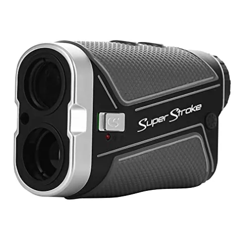 Enhance your golf game with the SuperStroke Golf TXr-1000 Slope Laser Rangefinder. This sleek black/gray rangefinder is packed with features such as a SLOPE SWITCH for easy slope mode adjustment, a MAGNETIC CART MOUNT for secure attachment, and a clear OLED display with 7x magnification for accurate readings up to 1,000 yards with a +/- 1 yard precision. The FLAG-LOCK TECHNOLOGY provides vibration feedback for target lock-on, while the rechargeable Type-C battery ensures convenience with a USB charging cord included. Built to withstand various weather conditions, this rangefinder is both shock and water resistant, making it an essential tool for any avid golfer looking to improve their accuracy on the course.