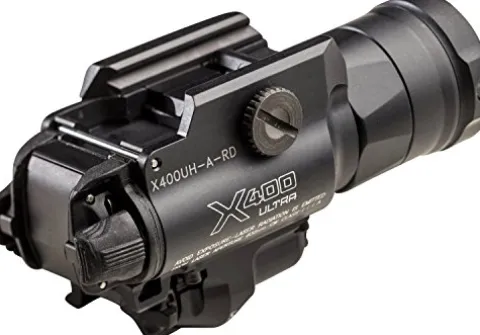 The X400UH Ultra Weaponlight from SureFire combines advanced technology and robust design to deliver unparalleled performance in critical situations. With a powerful output of 600 lumens, its virtually indestructible ultra-high-output LED provides tactical-level illumination for up to 1.75 hours, ensuring you have the light you need when it matters most. The versatile TIR lens creates a well-defined beam, perfect for both close-quarters and longer-range tasks, while the highly visible 5 mW / 635 nm red laser sight enhances targeting accuracy without frequent re-zeroing. Designed for durability, its hard-anodized aluminum body, tempered window, and weatherproof seals withstand the rigors of any environment. The cam-slotted bezel and rear locking lugs ensure a secure fit with the MASTERFIRE holster, providing reliable weapon retention. Elevate your tactical setup with the X400UH Ultra Weaponlight, a perfect blend of power, precision, and resilience.