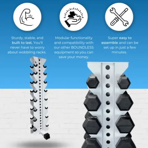 - EXPANSION CAPABILITIES: This is not your traditional dumbbell rack. Want more out of this rack besides holding your dumbbells? No problem! Want to attach a landmine or store your barbell or plates to it? or maybe in the future you just need more space for more heavier dumbbell storage? Our Vertical rack has been designed to grow with you as your fitness needs increase.