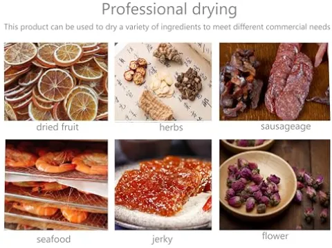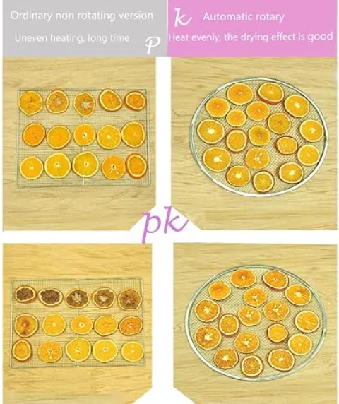 - 【Widely Application】Can easily and quickly dehydrate various vegetables, fruits (peel), herbs, beans, meat, fish and shrimp, bread, mushrooms, tea and other ingredients, with hot air. The nutritional components will be firmly locked in, without adding any pigments, additives or seasonings.
