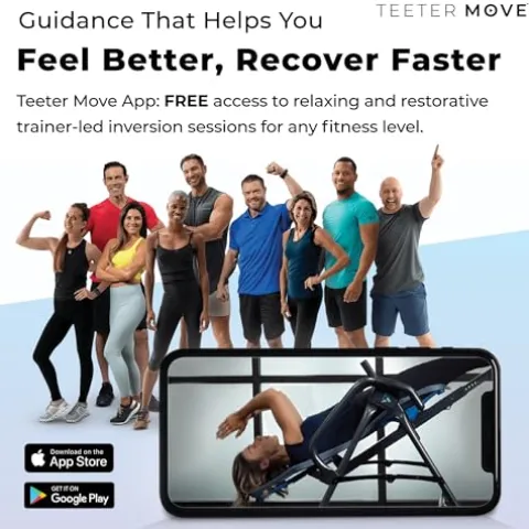 - FREE PERSONAL TRAINING APP: Feel better and recover faster with Teeter Move. Subscription-free access to visual and audio-guided programs designed to help you progress in your recovery. Our trainers make inversion simple with classes that vary in length, experience level and session type. iOS /Android compatible.