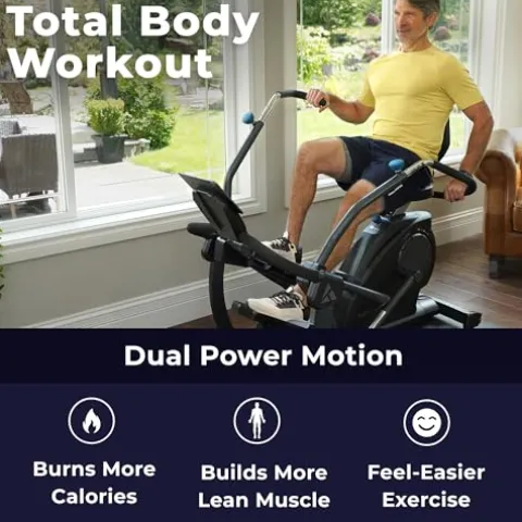 - TOTAL BODY WORKOUT: Dual power motion works your upper and lower body, distributing muscle exertion. Your workout will feel easier while engaging all major muscle groups to build strength and burn more calories. Isolate your legs or arms to vary your workout.