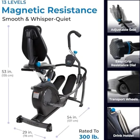 - WHISPER-QUIET MAGNETIC RESISTANCE: 13 Levels with easy-grip adjustment lets you go from light to intense without skipping a beat. Friction-free, long-lasting performance; perfectly synchronized handles and pedals deliver a silent, fluid ride so you can workout anytime…day or night!