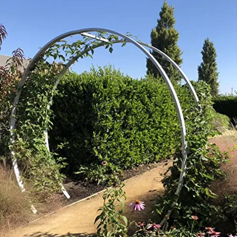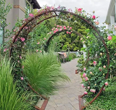 The Original Gracie Modern Arbor Moongate by Terra Trellis is a stunning addition to any outdoor space, combining contemporary design with functional elegance. Crafted in a rich oxide color, this arbor enhances your garden or patio while providing a beautiful entryway or focal point. Its durable construction ensures longevity, making it a perfect choice for supporting climbing plants and creating a serene atmosphere in your backyard. Elevate your outdoor aesthetics and enjoy a sophisticated touch with this exquisite moongate arbor.