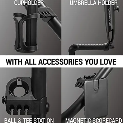 - All Accessories You Love – Extensive range of accessories like umbrella holder, magnetic scorecard, drinks holder and the convenient ball+tee station are included. Sure to be the very best gift for all golf lovers.