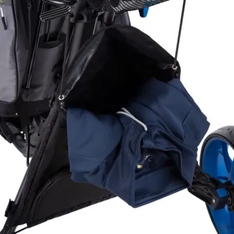 The TGW Tour 4-Wheel Golf Push Cart in Dark Grey/Blue is a top-notch choice for golf enthusiasts. Crafted with a sturdy aluminum frame, this cart features large rear and front wheels made of maintenance-free EVA material for smooth rolling with ball bearings. Its front wheel axle suspension provides added balance, while the ergonomic padded handle can be adjusted for comfort during long rounds. The cart also includes convenient features like an integrated scorecard holder with storage, a beverage holder, and a mesh net. Conquer the course with ease and style using this reliable and feature-packed push cart from TGW.