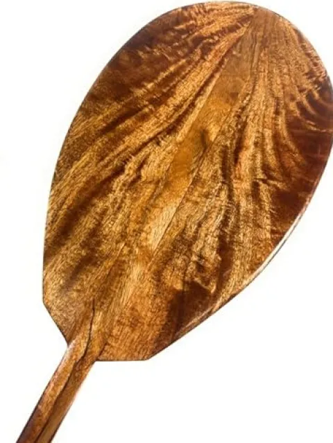The Tikimaster Blonde Curly Mango Outrigger Paddle combines exceptional craftsmanship with stunning aesthetics, making it an ideal choice for both seasoned paddlers and newcomers. Crafted from premium blonde curly mango wood, this 50-inch paddle features a comfortable T-handle design that ensures a secure grip and optimal maneuverability on the water. Handcrafted in Hawaii, each paddle showcases unique wood grain patterns, reflecting the beauty of the islands while providing a lightweight yet durable option for your paddling adventures. Elevate your experience on the water with this beautifully designed paddle that merges functionality and artistry.