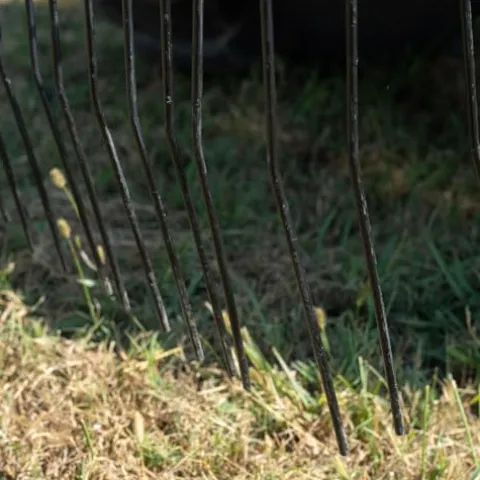- VERSATILE LANDSCAPE RAKE: Drag-behind landscape rake makes spring and fall cleanups easy and quick. The thin tines quickly scrape across the surface and collect pesky pine needles. This rake can also clear dead leaves, grass, sticks, and other debris that can harm and weaken your grassroots.
