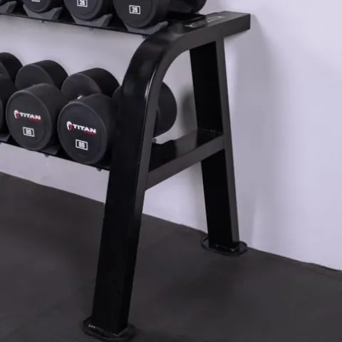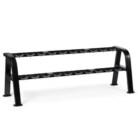 - MULTI-LEVEL STORAGE: The 2-tiered free-weight rack features saddle-styled cradles that provide easy access and storage of various sized and shaped dumbbells.