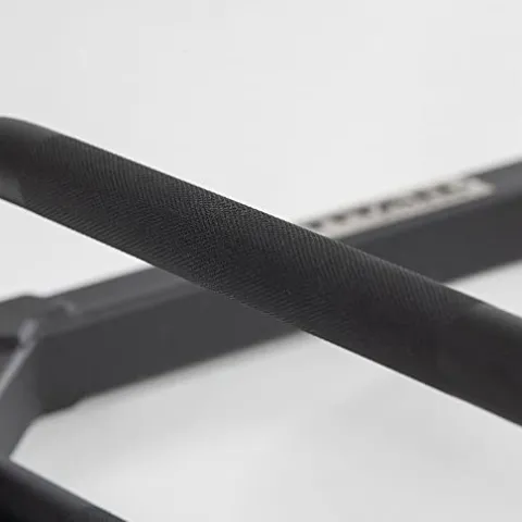 - UPDATED VERSION: The Rackable Trap Bar now has an improved black powder coat, medium diamond texture knurling, and Titan branded endcaps.