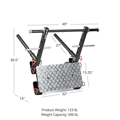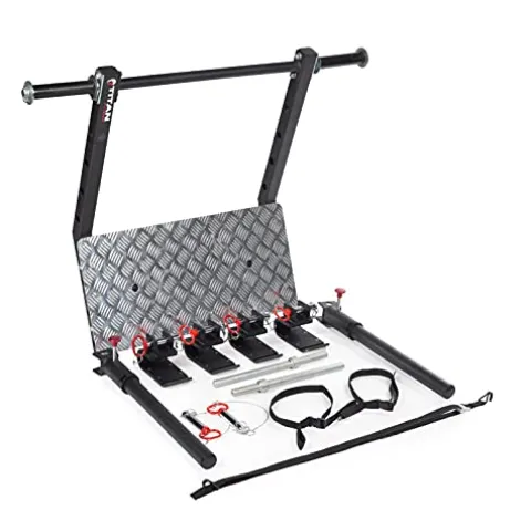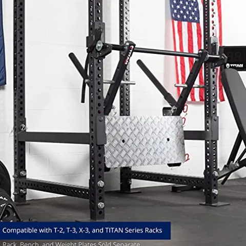 Enhance your workout routine with the Titan Fitness Power Rack Stealth Leg Press compatible with all Titan Series Racks. This versatile attachment offers a range of exercises including leg press, kickback, chest press, lateral press, and dip bars, allowing you to target different muscle groups effectively. With a secure design on J-Hooks and added safety straps, you can push through leg day like a pro while ensuring a safe workout environment. Rated for up to 500 lbs, this leg press attachment is a must-have addition to your home gym setup.