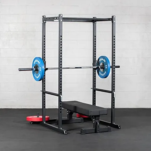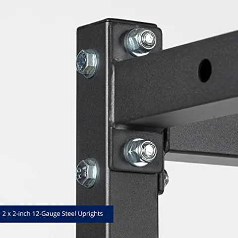 - Included: (4) heavy-duty steel uprights, (2) Pin and Pipe Safeties, (2) Weight Plate Horns, (2) J-Hooks with UHMW plastic, 1.25-inch Single Pull-Up Bar, and Assembly Hardware
