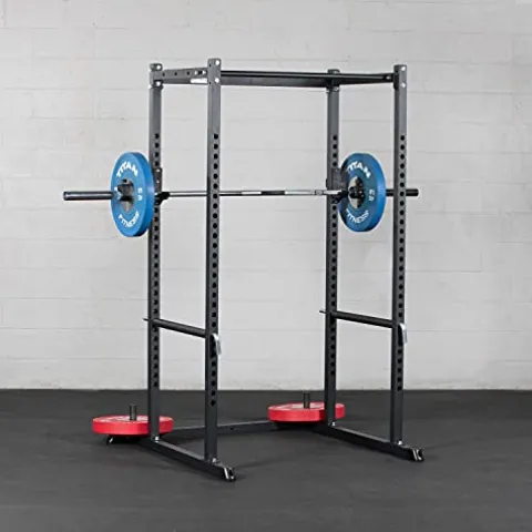 The Titan Fitness T-2 Series Power Rack stands tall at 83 inches high, offering a sturdy and reliable fitness solution for your home gym. Built with durable 2 x 2-inch 12-gauge steel uprights and featuring 1-inch holes spaced 2 inches apart, this power rack provides versatile options for your workouts. The rack comes complete with essential accessories such as (4) heavy-duty steel uprights, (2) Pin and Pipe Safeties, (2) Weight Plate Horns, and (2) J-Hooks with UHMW plastic for added protection. Additionally, the rack includes a 1.25-inch Single Pull-Up Bar and assembly hardware, making it a comprehensive and practical choice for strength training enthusiasts.