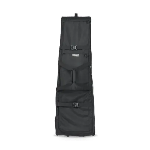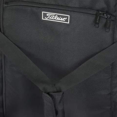 Transport your golf gear with ease and style using the Titleist Players Travel Cover in sleek black. This travel cover features a new U-shaped opening for effortless loading and unloading, along with two interior shoe pockets to keep your footwear organized. With interior straps to secure your golf bag in place and durable skate wheels for smooth mobility, this cover offers both convenience and protection for your equipment. Additionally, the external valuables pocket provides a handy storage space for your personal items. Travel confidently knowing your gear is safe and secure in this top-quality Titleist travel cover.