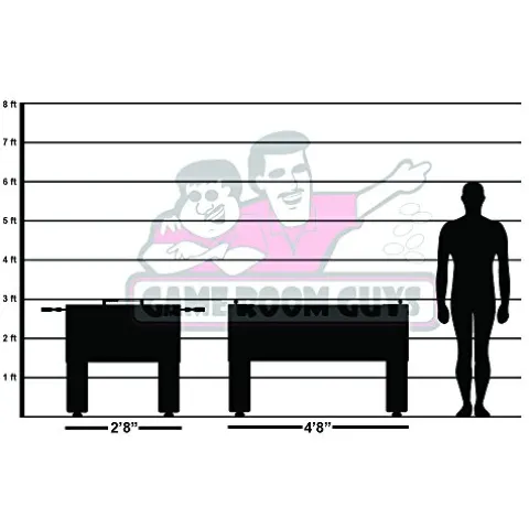 - BUILT FOR COMPETITIVE PLAY – This foosball game table is built with a thick commercial-grade split cabinet for maximum durability. The 8-sided molded handle with non-slip surface offers enhanced grip. Assembled Dimensions: 56 L x 30 W (70 inches including rods) x 36 H inches / Weight: 355 pounds.