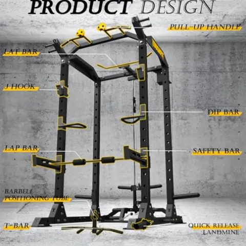 - PREMIUM LIGHT COMMERCIAL POWER CAGE: This power cage is made with high-quality Q235 carbon steel for the main pipe material. It features sturdy and dense welded steel pipes. The surface is coated with an environmentally friendly powder that is safe for human use. It is long-lasting, resistant to high temperatures, and doesn’t easily peel off.