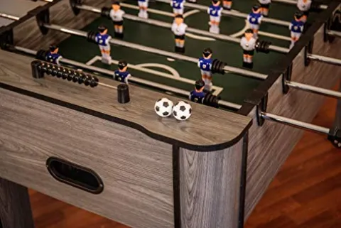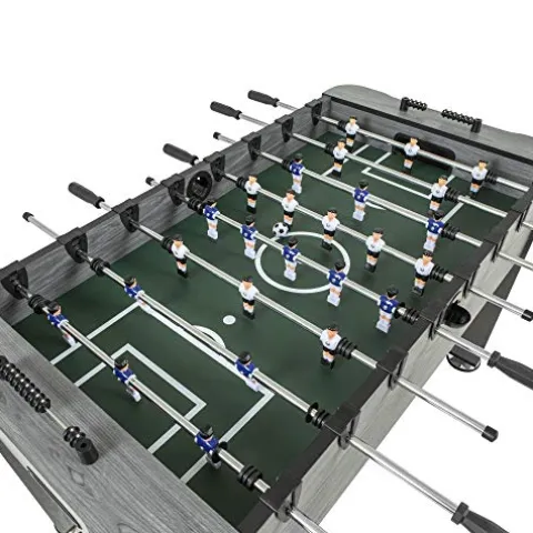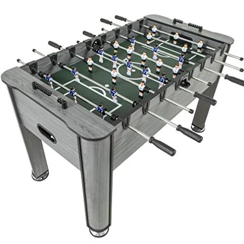 Elevate your game room with the Triumph Sports 56″ Medford Competition Foosball Table, featuring a sleek grey wood laminate finish that complements any decor. With its 15.8mm diameter chrome-finish steel rods, equipped with realistic players, setup is a breeze thanks to the quick connect system. This foosball table offers an official size playfield of 47” x 27”, perfect for both casual and competitive play. The 56″L x 29.5″W x 34″H dimensions ensure ample space for family fun, while the L Style legs with 5″ chrome leg levelers guarantee a stable playing surface on any floor. Complete with a ball entry cup, automatic ball return, and manual bead scorers, the Medford table combines functionality with style for unforgettable foosball matches.