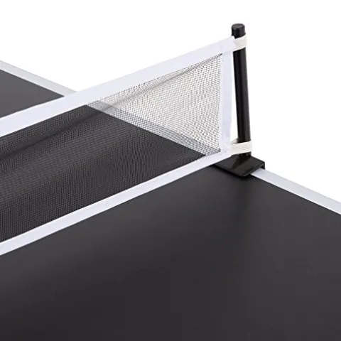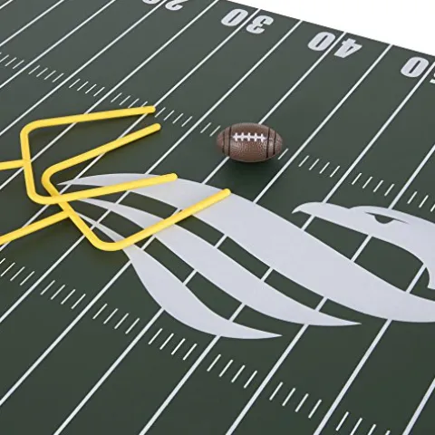 - Two-sided conversion top board that easily flips over to change from table tennis to launch football