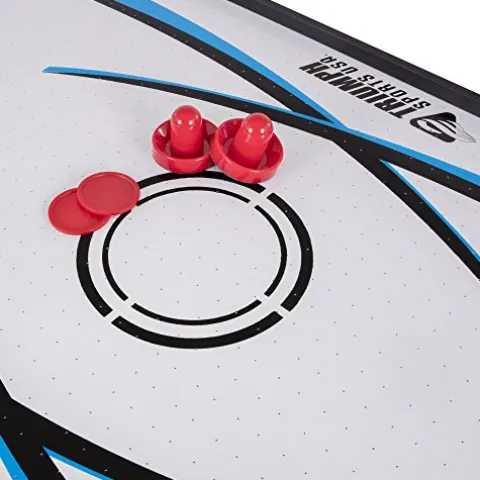 Experience endless fun with the TRIUMPH SPORTS 72″ 4 in 1 Multi-Game Swivel Table. This versatile table allows you to play four different games – air powered hockey, table tennis, billiards, and launch football – all on one compact surface. The rotating swivel design enables quick transitions between hockey and billiards, while the two-sided conversion top easily flips over for table tennis or launch football. Complete with all the accessories you need, including air hockey pushers, pucks, billiard cues, balls, table tennis paddles, field goals, and a mini football, this multi-game table is perfect for entertaining family and friends for hours of enjoyment.