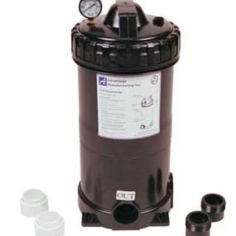 - 75 sq Ft cartridge filter and filter element on a molded base with 110V cord