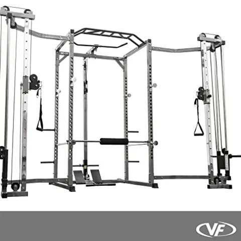 The Valor Fitness BD-33BCCL Power Rack with LAT Pull and Cable Crossover Attachment is a heavy-duty powerhouse designed for serious strength training. Constructed from 2” x 2” 12-gauge steel with rubber base caps for added safety and stability, this rack includes the BD-33 Power Cage with additional attachments for lat pull and cable crossover exercises. The double bar track ensures smooth movement with Olympic or standard plates, while its space-efficient design combines multiple units into one, creating a full commercial gym-style machine measuring 88” x 116.5” x 86”. With impressive weight capacities ranging from 500 lbs. to 750 lbs., this versatile equipment is ideal for a wide range of strength training routines.