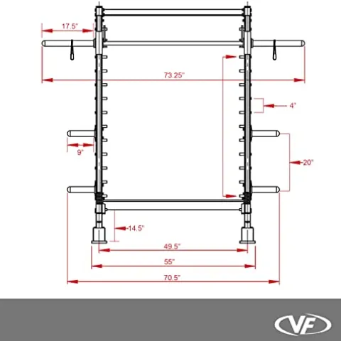 The Valor Fitness Smith Machine Home Gym Equipment is a robust and versatile addition to your home gym setup. Constructed from 4” x 2”, 12-gauge steel, this machine offers unparalleled strength and stability for your workouts, supporting a maximum weight of 500 lbs. The attached sliding knurled barbell ensures safe guided motion, eliminating the need for a spotter during exercises like bench presses and squats. With additional workout options like rows, upright rows, shrugs, and calf raises, this machine provides a complete full-body workout experience. The heavy-duty steel knurled bar offers optimal grip and performance, while the 2″ plate storage pegs allow for convenient weight plate storage. Upgrade your home gym with the Valor Fitness Smith Machine for a professional-grade workout experience.