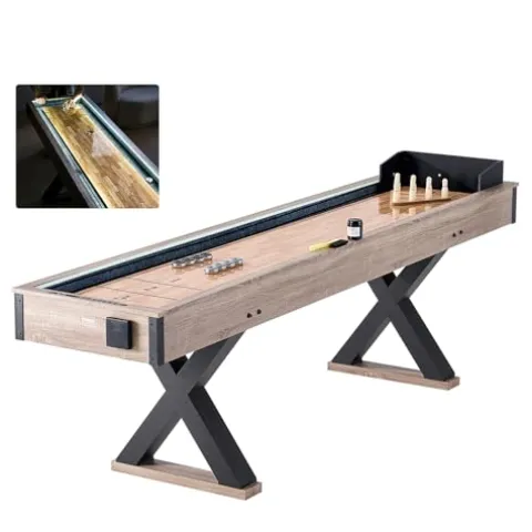 - 9 FT Shuffleboard Table: The 9-foot length provides ample space for exciting gameplay, while integrated LED lighting spotlights the action, making every game more thrilling and visually appealing.