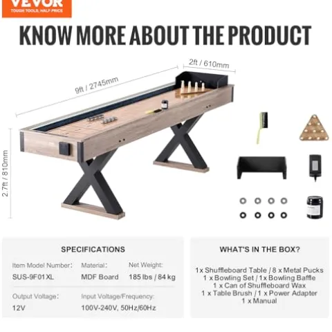 - 2 Games in 1: Double your fun with our 2-in-1 shuffleboard that offers two games in one. Enjoy the traditional shuffleboard game or switch things up with a fun game of bowling. This dual-game feature ensures endless entertainment for players of all ages.