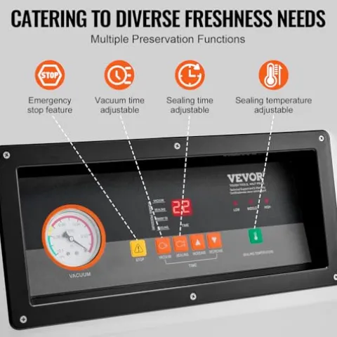 - Multi-Functional Design: Apart from delivering a premium vacuum effect, this vacuum chamber machine also comes with multiple practical features, making food preservation more convenient. Its adjustable cooling time ensures rapid cooling of sealed items for freshness. More handy features like emergency stop, start, and marinating meet different user needs.