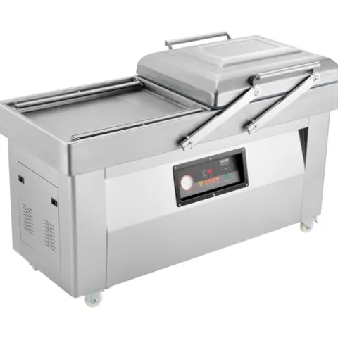 The VEVOR Chamber Vacuum Sealer offers exceptional sealing power with a robust 1200W motor and a maximum vacuum pressure of -100KPa, ensuring your food stays fresh and flavorful longer. Its spacious chamber, capable of accommodating bags up to 23.62 inches, makes it ideal for both home kitchens and commercial use, while the advanced pressure bar design guarantees reliable sealing across various bag sizes. Equipped with user-friendly features like adjustable cooling time and an emergency stop function, this vacuum sealer is as safe as it is efficient. The included kit with 60 vacuum bags and essential accessories allows you to start preserving food immediately, making it perfect for sealing everything from liquids and solids to pastes and powders. With its quiet operation and versatile applications, the VEVOR Chamber Vacuum Sealer is the ultimate solution for preserving the freshness of your ingredients.