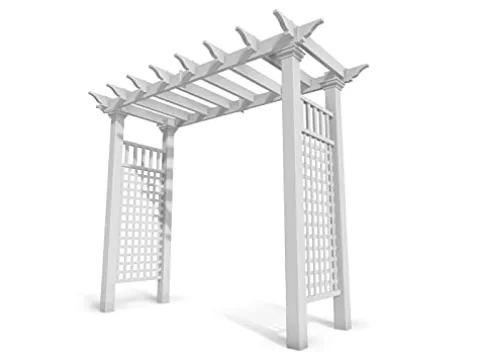 The Vita Fairfield Grande Vinyl Arbor combines elegance and functionality, making it a stunning addition to any garden or outdoor space. Crafted from durable, BPA and phthalate-free vinyl, this white arbor offers a wide clearance and a stylish flat-top design, perfect for showcasing your climbing plants and flowers. The intricate lattice detail not only enhances its aesthetic appeal but also provides essential support for your greenery. Enjoy the beauty of your garden without the hassle of maintenance, as this arbor is easy to clean and built to last. Please note that additional materials are required for installation, ensuring a secure and lasting fit in your outdoor sanctuary.
