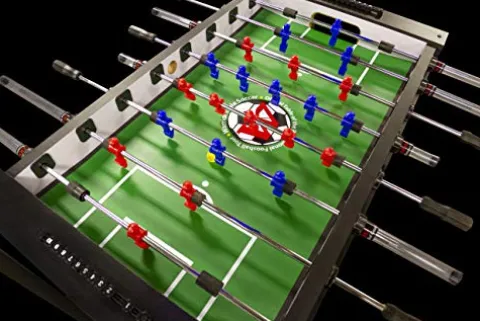 Experience the thrill of competitive foosball with the Warrior Table Soccer Professional Black Light Foosball Table. This table, designed by Warrior Table Soccer, comes in a striking Blue or Red color and boasts features such as a unique Rod Guard system for player safety, special Black Light Men & Foosballs, and championship play characteristics favored by professional players. Its easy assembly makes it the fastest and most convenient table on the market, loved by families for its ease of play and safety. Whether you’re a seasoned player or a family looking for fun, this foosball table is sure to provide hours of entertainment for all ages.