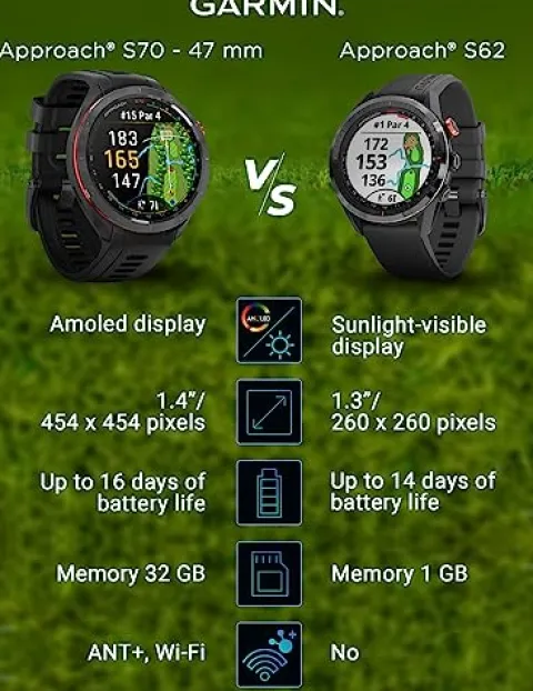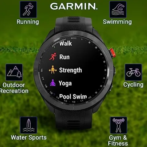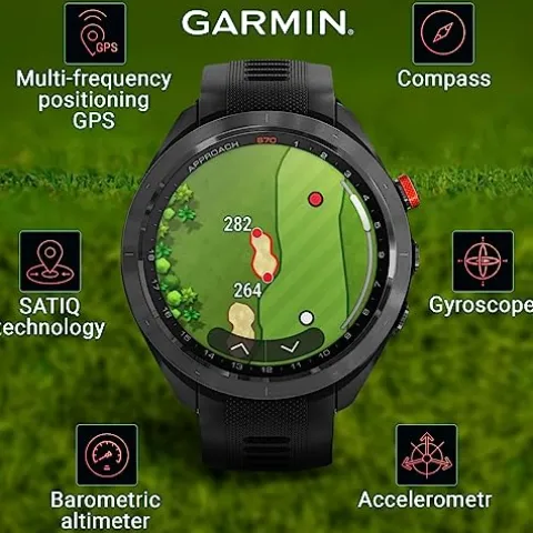 - [Garmin Approach S70] a 47 mm high-performance smartwatch w/ Black Ceramic Bezel & Black Silicone Band, designed for everyday use without any compromises.