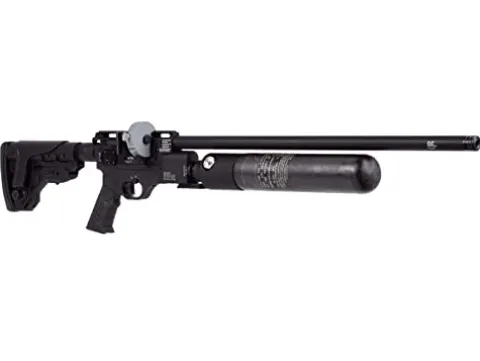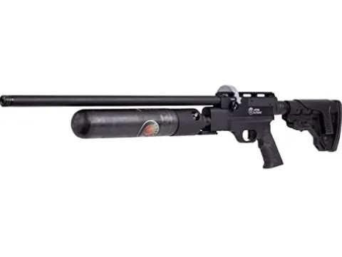 - Built-in pressure gauge to monitor cylinder pressure. 5-position telescoping stock with 9-position elevation adjustable cheek rest. Ergonomic soft rubber pistol grip. Manual safety switch.