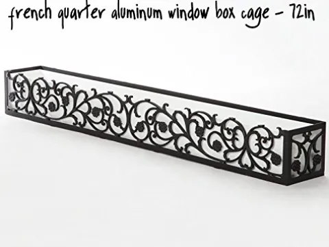 Enhance the charm of your home with the 72-inch French Quarter Aluminum Window Box Cage from Windowbox, expertly crafted to evoke the elegance of the French countryside. This beautifully designed cage features intricate scroll and flower details, making it a perfect addition to any exterior. Compatible with our liners or standard 8-inch pots, it offers versatile planting options. The durable powder-coated finish ensures resistance to rust, maintaining its stunning black color through the seasons. Measuring 72 inches long, 9 inches wide, and 9 inches high, this window box cage not only elevates your curb appeal but also provides a functional space for your favorite blooms.