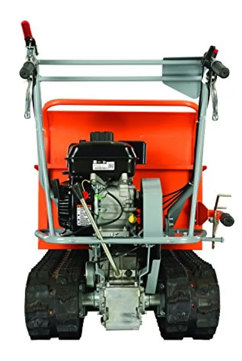 The YARDMAX YD8103 Track Barrow is engineered for maximum efficiency and reliability, making it the perfect solution for heavy-duty tasks. With a robust 660 lb capacity on level ground, this powerful track barrow is powered by a Briggs & Stratton 900 series engine, providing 6.5 hp and exceptional performance. Its all-terrain tracks ensure superior traction and stability, easily navigating uneven, muddy, or wet surfaces. Featuring a multi-speed heavy-duty transmission with three forward speeds and reverse, this track barrow adapts to your workload with ease. Constructed with a solid steel hopper, frame, and handles, it guarantees long-lasting durability, making it an essential tool for any demanding project.