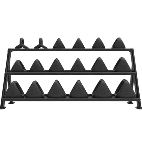 - 18-Piece Full Range Bundle with Long Rack includes pairs of 4.5 kg (10 lbs), 6 kg (14 lbs), 8 kg (18 lbs), 10 kg (22 lbs), 12 kg (26 lbs), 14 kg (31 lbs), 16 kg (35 lbs), 18 kg (40 lbs), 20 kg (44 lbs) weights and one Long Horizontal Rack. The TRX YBell is a dumbbell, kettlebell and push-up stand all in one tool. With the TRX YBell, a grip change is an equipment change. By changing your grip on the TRX YBell, the weight distribution shifts changing it from one piece of equipment to another