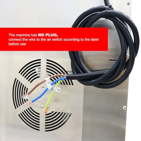 - APPLICATION:This dehydrator can be used for vegetables, meat, fruits, fish, grains, camellia, cheese, and biscuits.The machine has NO PLUG,connect the wire to the air switch according to the label before use