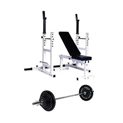 Enhance your home gym setup with the York Barbell Weight Bench featuring a 300 LBS Weight Set. This comprehensive package includes a sturdy 7’ Olympic Bar, a variety of standard Olympic plates ranging from 5 to 45 LBS, and convenient spring clip collars. The adjustable bench, along with the included barbell support attachment, allows for versatile exercises like bench press and squat rack routines. Crafted for durability and functionality, this weight bench set from York Barbell is a complete solution for strength training enthusiasts looking to elevate their workouts in the comfort of their own space.