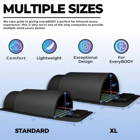 - 3 ZONE CONTROL: The sauna dome has 3 independently controlled heating zones allowing you to be able to adjust the temperature exactly to your liking. This creates even heat around your entire body. The dome shape also allows for consistent distance from the heating elements, this is crucial for far infrared effectiveness.