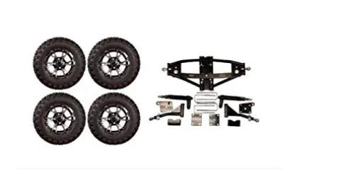 Enhance the look and performance of your Club Car Precedent Golf Cart with the Lift Kit Combo featuring 12″ Flash Wheels from 3G. This combo includes a 6″ A-Arm Lift Kit specifically designed for Club Car Precedent models from 2004 onwards, fitting both Gas & Electric Models. The set comes complete with (4) wheels, (4) tires, (4) center caps, and (16) standard chrome lug nuts. The 23×10.5-12 tires are mounted on 12″ Flash wheels, adding a stylish touch to your cart. It’s essential to know your cart’s year, make, model, and wheel well size before making a purchase. Professional installation is recommended, and technical support is not provided. Elevate your golf cart’s performance and appearance with this comprehensive lift kit combo.