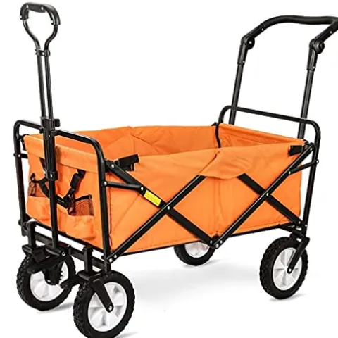 - Wheels: Heavy duty 4″ wheels, made of sturdy steel frame and durable 600D oxford cloth, removable and washable, easy to carry heavy loads, long service lifeCollapsible camping folding cart:Suitable for outdoor sports activities, gardens, parks or beach trips and transportation equipment such as large farms.