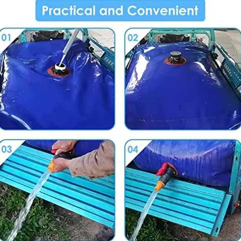 - 【Convenient Water Tank】: Economical water sac inlet/outlet and accessories are reinforced and upgraded, more durable than ordinary water bags. With faucet, can be connected to the hose, you can direct the water to the manger, bathtub, bushfire or irrigation channel.【PVC Water Storage Bladder】: Portable emergency water storage tank is made of quality soft PVC material which is lightweight, collapsible, non cracking, waterproof, stretch resistance and UV resist