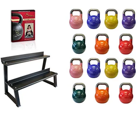 - Order includes 1 piece 2 tier 56″ heavy duty kettlebell rack and 1pc Lisa Shaffer’s DVD