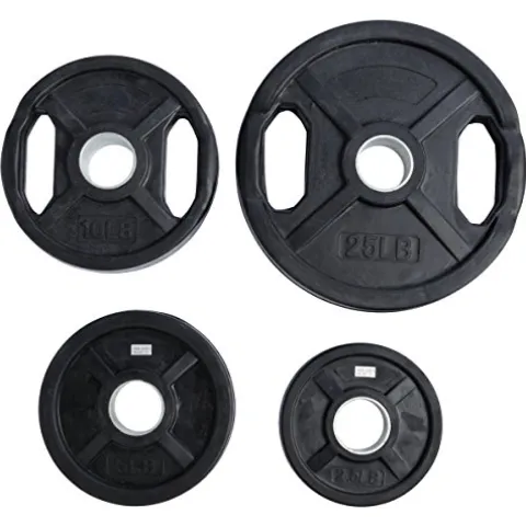 Enhance your weightlifting routine with the Ader Rubber Coated Olympic Grip Plate Set (245 LBS). This set, crafted by Ader Sporting Goods, includes (2) pieces of each size: 2.5 LBS, 5 LBS, 10 LBS, 25 LBS, 35 LBS, and 45 LBS, totaling 245 LBS. The rubber coating not only protects floors and equipment but also provides a secure grip during workouts. The hole grip design ensures easy and safe handling, making it an ideal choice for both beginners and seasoned weightlifters. Elevate your strength training sessions with this durable and versatile plate set.