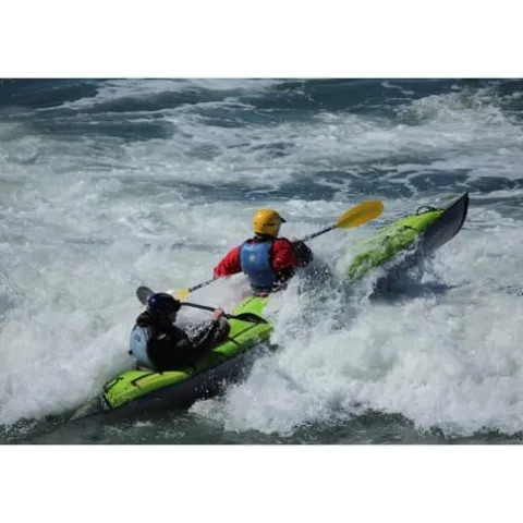 The Advanced Elements AdvancedFrame Convertible Inflatable Kayak in green is designed for both solo and tandem adventures, offering versatility and superior performance on the water. Featuring built-in aluminum ribs, this kayak ensures excellent tracking, while the three layers of material provide outstanding puncture resistance for peace of mind during your excursions. Preassembled at the factory, it allows for quick setup—simply unfold, inflate, and attach the seats. Enjoy hours of comfortable paddling with high-support, adjustable padded seats. Whether you’re exploring calm lakes or navigating winding rivers, this kayak promises a reliable and enjoyable experience for paddlers of all skill levels.
